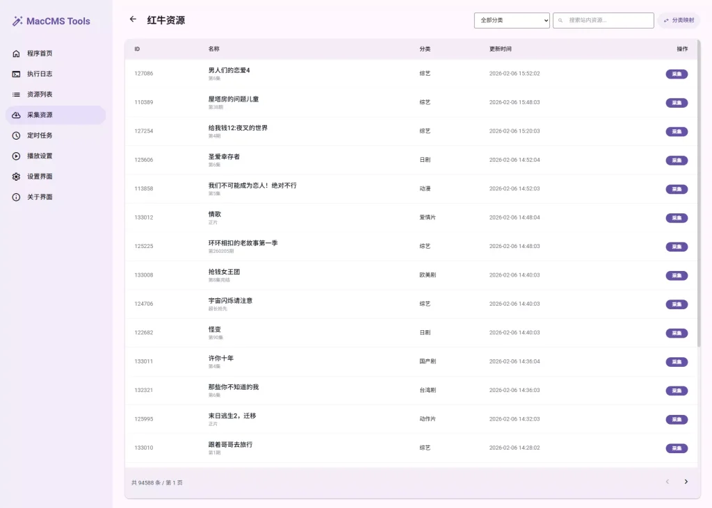 - 新站快速部署:利用采集功能快速填充内容,并自动配置播放器,大幅缩短建站周期。