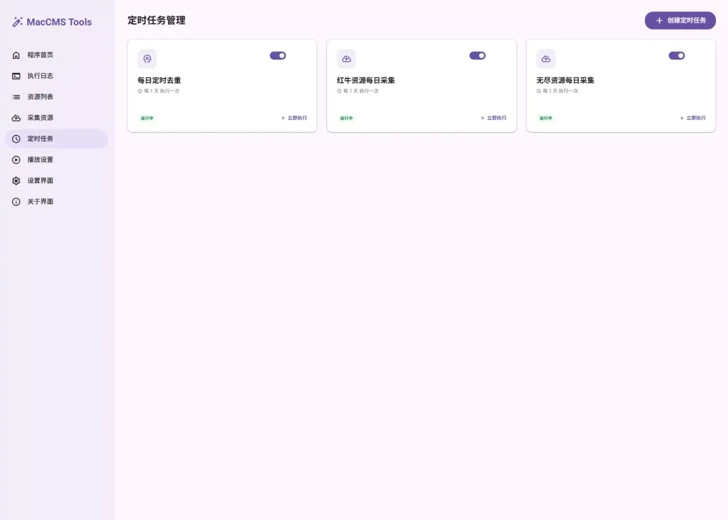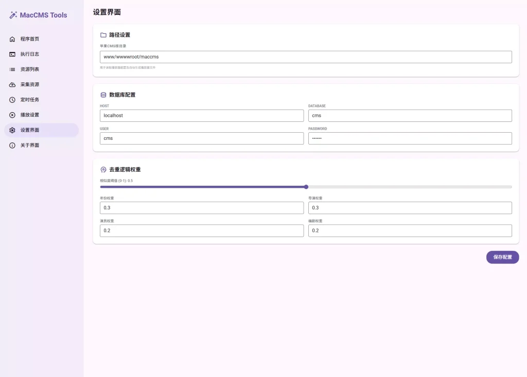 MacCMS Tools v2.0 的界面设计遵循Material Design 3(MD3)设计规范,强调质感、深度与动态感,为用户提供沉浸式、高效的操作体验。